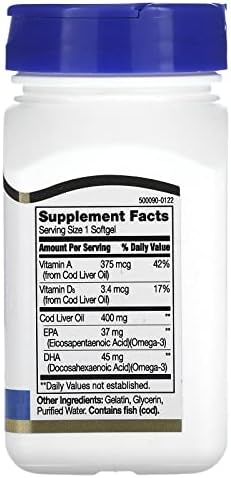 Discover the traditional health benefits of 21st Century Norwegian Cod Liver Oil. This premium supplement delivers a potent blend of Omega-3 fatty acids (EPA and DHA), crucial for maintaining optimal cardiovascular health, supporting cognitive function, and promoting joint flexibility. Furthermore, it's naturally rich in essential Vitamins A and D, vital for robust immune system function, healthy vision, and strong bones. Sourced from the pristine waters of Norway, our cod liver oil provides superior quality in convenient, easy-to-swallow softgels, ensuring you get the comprehensive support your body needs for overall vitality and well-being.