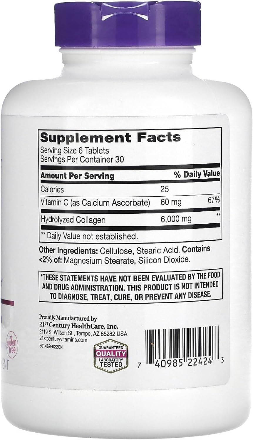 Unlock the secret to vibrant skin, lustrous hair, and strong nails with 21st Century Super Collagen Plus Vitamin C. This high-potency dietary supplement delivers a robust 6000mg of hydrolyzed collagen, essential for maintaining the structural integrity and elasticity of your skin, promoting healthy hair growth, and reinforcing nail strength. Fortified with Vitamin C, a crucial antioxidant, this formula not only aids in the body's natural collagen synthesis but also provides vital protection against environmental damage, ensuring comprehensive beauty and wellness support from the inside out.