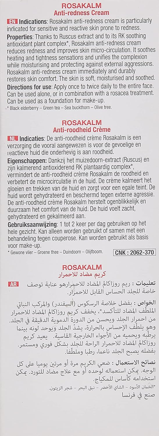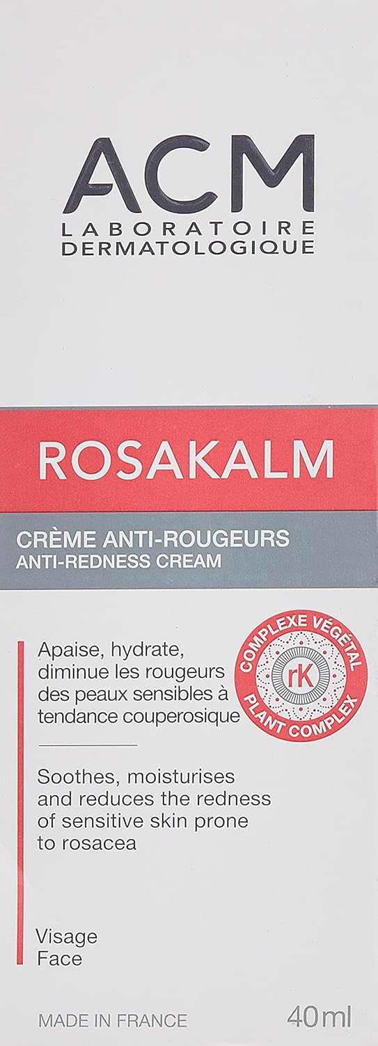 Discover the ultimate relief for sensitive and reactive skin with ACM Rosakalm Anti-Redness Cream. Expertly formulated to target and reduce visible redness, this soothing cream provides immediate comfort and helps to calm irritated skin. Its gentle yet effective ingredients work to strengthen the skin's barrier, minimizing the appearance of redness and promoting a more even, serene complexion. Ideal for daily use, it's your go-to solution for skin that feels calm, comfortable, and visibly less red.