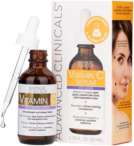 Unlock radiant, youthful-looking skin with the Advanced Clinicals Vitamin C Anti-Aging Serum. This potent formula is expertly designed to brighten your complexion, reduce the appearance of fine lines and wrinkles, and promote a firmer, more even skin tone. Infused with a powerful dose of Vitamin C, a renowned antioxidant, this serum works to combat environmental damage, stimulate collagen production, and enhance your skin's natural luminosity. Experience a visible transformation as your skin becomes smoother, brighter, and more resilient.