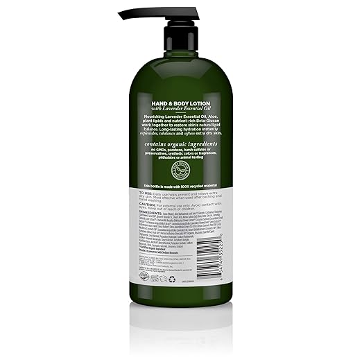 Indulge your skin with the calming embrace of Avalon Organics Nourishing Lavender Hand & Body Lotion. This generous 32 oz bottle provides deep hydration and a soothing, natural lavender aroma, perfect for daily use. Crafted with certified organic ingredients, this luxurious lotion absorbs quickly, leaving your skin feeling soft, smooth, and nourished without any greasy residue. Ideal for all skin types, it helps to restore skin's natural moisture balance while promoting a sense of tranquility.