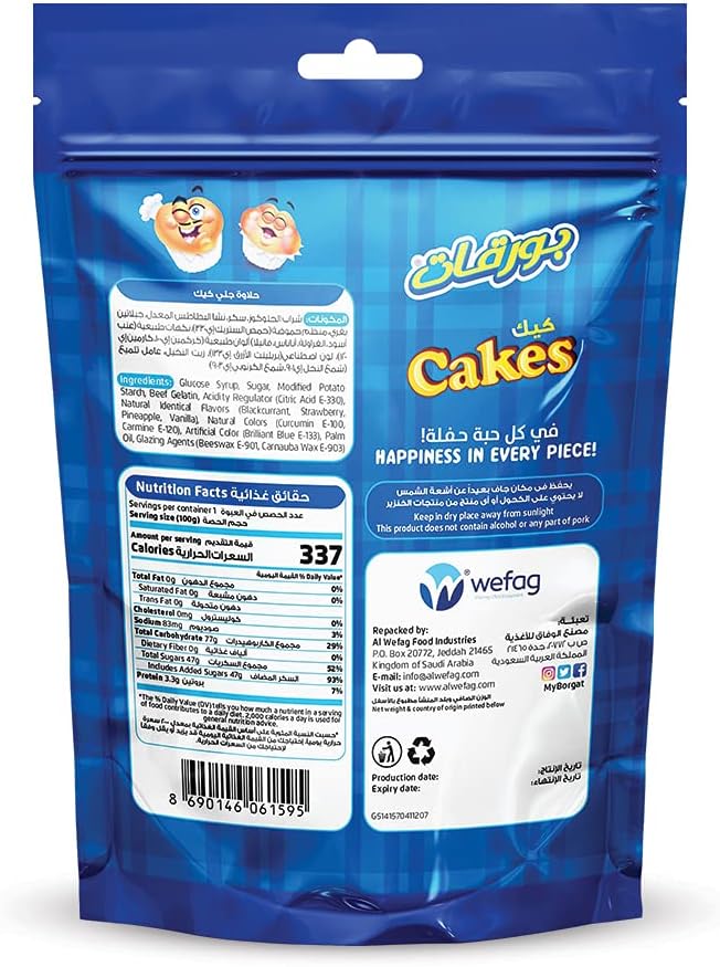 Dive into flavor-filled cake dreams with Borgat's Cake Gummy Candy! This 80g pouch features confectionery-inspired flavors - including classic vanilla, chocolate, and strawberry.