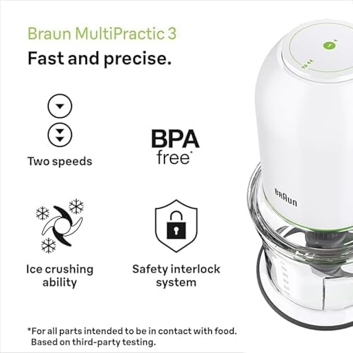 Revolutionize your kitchen routine with the Braun 2-in-1 Chopper, engineered for maximum efficiency and convenience. This powerful yet compact food preparation tool effortlessly handles a variety of ingredients, making chopping, mincing, and blending a breeze. Its intelligent 2-in-1 design saves valuable counter space and precious time, establishing it as an indispensable appliance for any modern kitchen. Whether you're preparing vibrant salsas, smooth dips, or finely chopped herbs and vegetables, the Braun Chopper delivers consistent, professional-quality results every time.