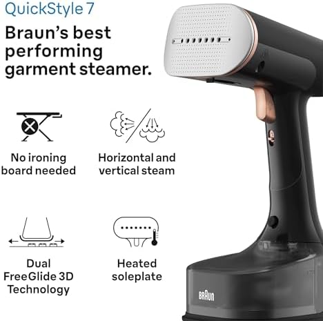 Experience the ultimate convenience in garment care with the Braun QuickStyle7 Handheld Garment Steamer. Designed for fast and effective wrinkle removal, this powerful steamer ensures your clothes look fresh and presentable in minutes. Its ergonomic, lightweight design makes it perfect for quick touch-ups at home or keeping your wardrobe pristine while traveling. Say goodbye to tedious ironing and hello to effortlessly smooth fabrics with professional results, enhancing your style with minimal effort.