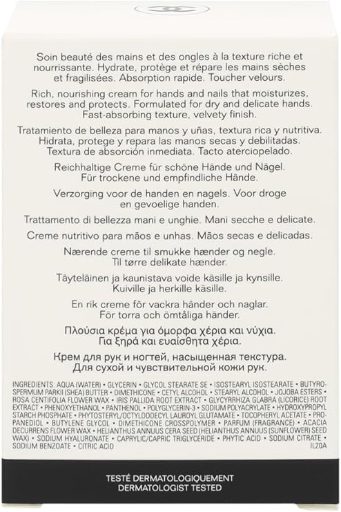 Indulge your hands with the iconic Chanel La Crème Main, a luxurious and deeply nourishing hand cream designed to moisturize, protect, and visibly smooth your skin. Its unique, pebble-shaped design makes it a chic accessory, while the rich, non-greasy formula leaves hands feeling soft, supple, and delicately scented. Perfect for daily use, this exquisite cream helps maintain youthful-looking hands.