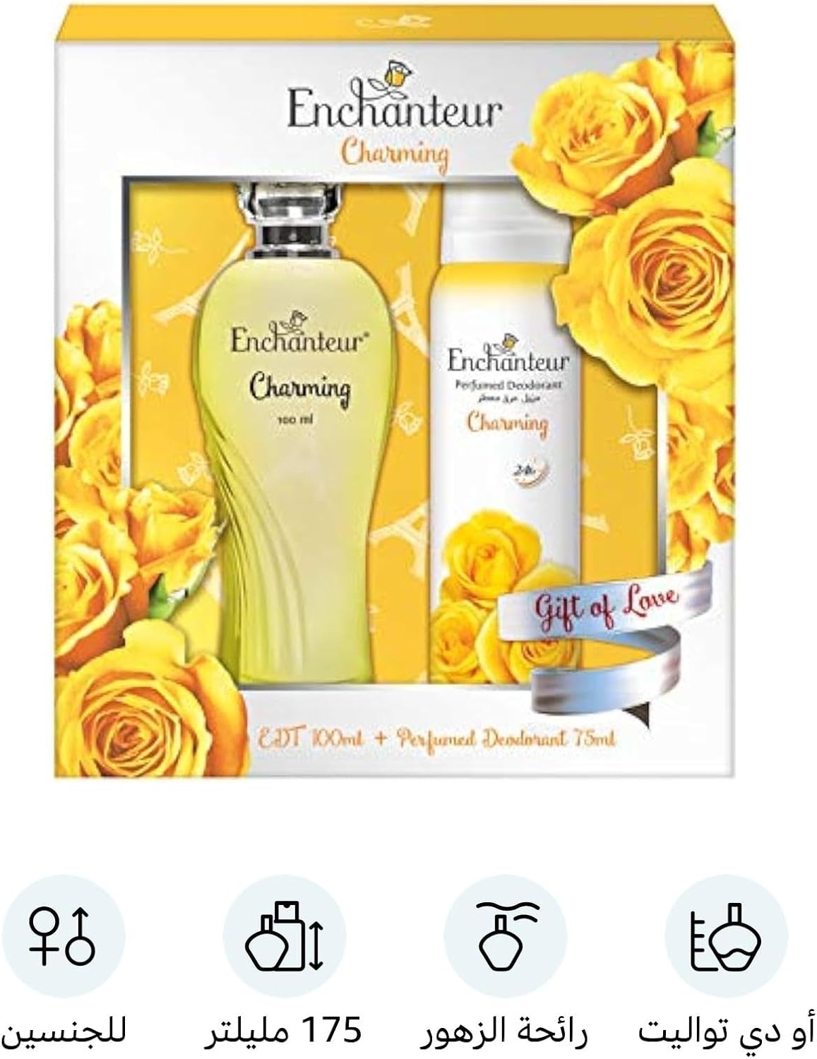 Experience the delicate blend of floral and musky notes that define the signature Enchanteur Charming fragrance. The EDT provides a light yet enchanting scent, while the deodorant ensures all-day freshness and protection, perfectly complementing the perfume. This beautiful gift set is a celebration of femininity and timeless elegance, making it a must-have addition to any beauty collection.