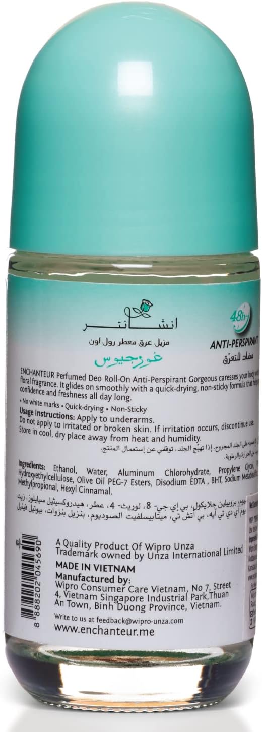 Experience lasting freshness and captivating scent with the Enchanteur Gorgeous Roll-On Antiperspirant Deodorant. This essential personal care item offers superior 48-hour protection against sweat and odor, ensuring you stay confidently dry and comfortable all day long. Infused with the luxurious and exquisite Enchanteur Gorgeous fragrance, it leaves a delightful, long-lasting aroma that enhances your presence. Perfect for daily use, its gentle formula and convenient roll-on application make it a must-have for every woman seeking elegance and reliability.