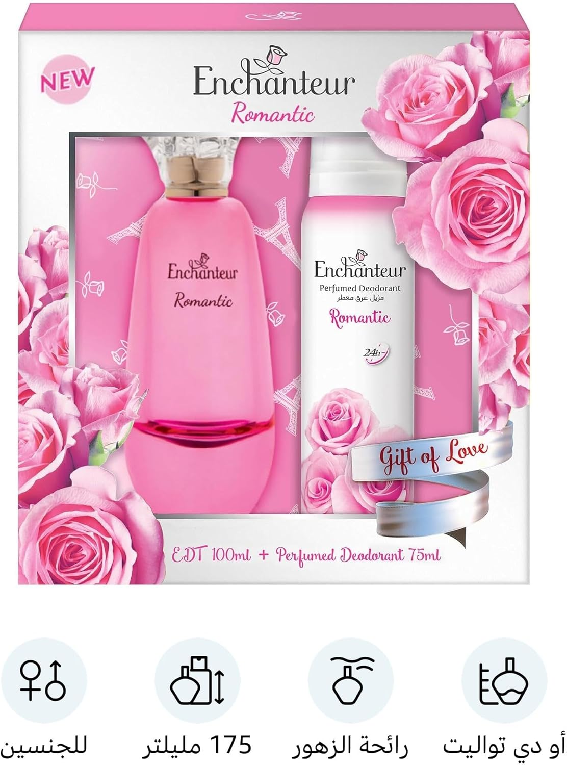 Indulge in the captivating allure of the Enchanteur Romantic Gift Set, designed to envelop you in a sophisticated and long-lasting floral fragrance. This exquisite set combines an Eau de Toilette (EDT) and a coordinating perfumed deodorant, offering a complete sensory experience that keeps you feeling fresh and elegantly scented throughout the day. Perfect for gifting or as a treat for yourself, the 'Romantic' scent profile evokes a feeling of tender love and enchantment, making every moment memorable.