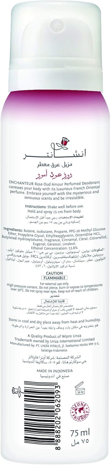 Indulge in an enchanting sensory experience with the Enchanteur Rose Oud Amour Perfumed Deodorant. Designed to provide superior 24-hour odor protection, this luxurious deodorant keeps you feeling fresh and confident all day long. Its exquisite formula is infused with the captivating and sophisticated blend of Rose and Oud, creating a unique, long-lasting fragrance that complements your personal elegance. Embrace the delicate yet powerful aroma that leaves your skin beautifully scented, ensuring you make a memorable impression wherever you go.