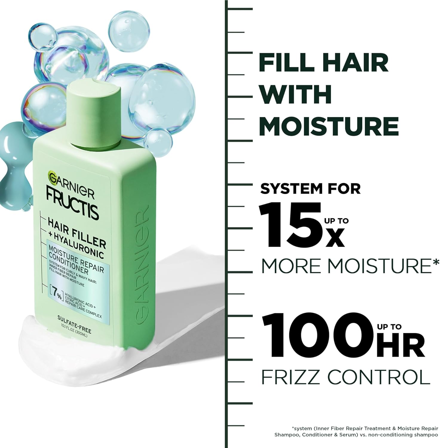 Revitalize your curls and waves with Garnier Fructis Hair Filler Moisture Repair Conditioner, specially formulated to bring life back to dry, damaged, and frizzy hair. This advanced conditioner provides deep moisture and intense repair, leaving your hair feeling softer, looking healthier, and beautifully defined. Infused with a unique Hair Filler complex, it works to plump and strengthen each strand from within, restoring elasticity and shine to your natural texture. Say goodbye to dryness and hello to bouncy, manageable, and vibrant curls and waves.