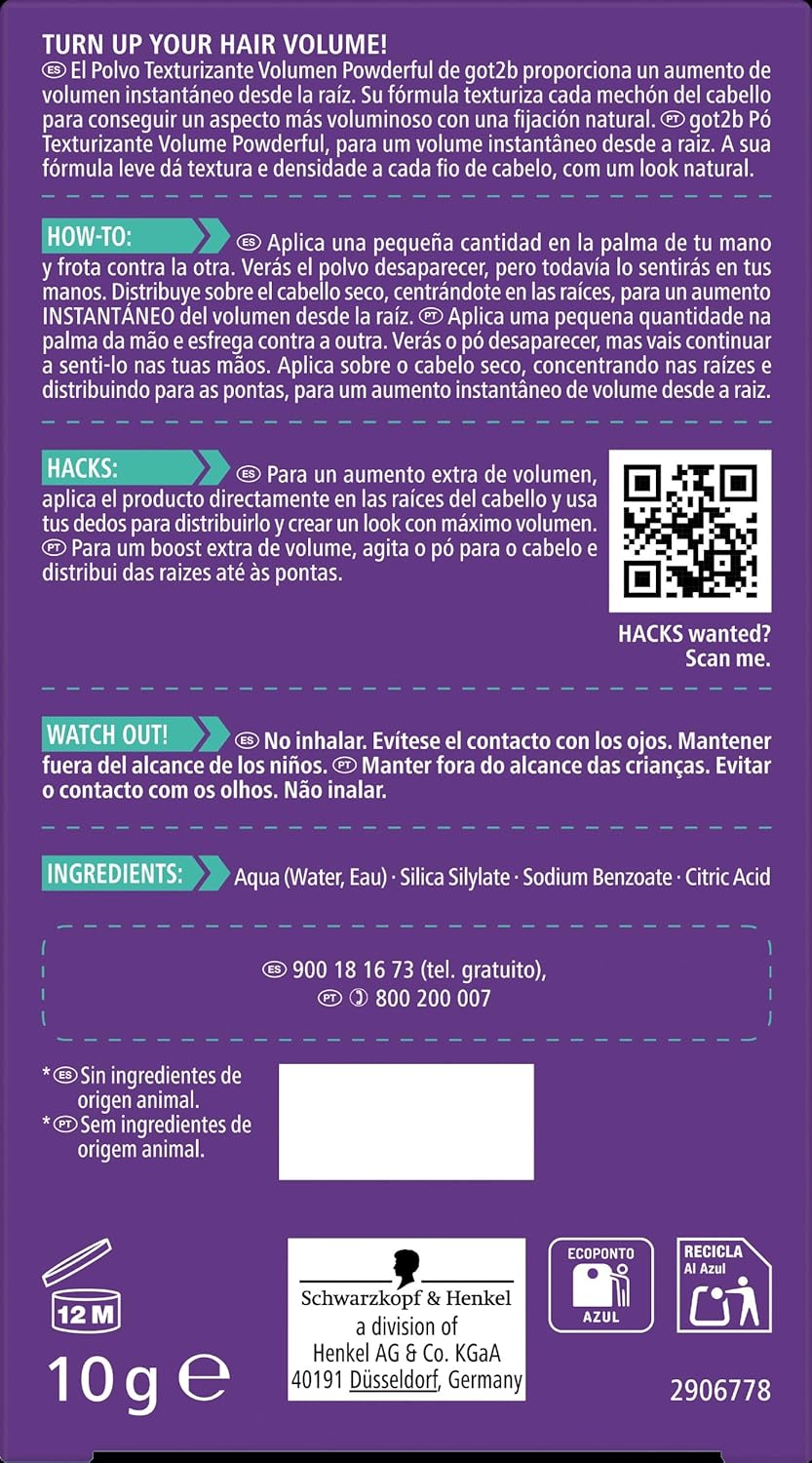 A highly concentrated styling solution, the Got2B Powder'ful formula delivers immediate volume and intense texture directly to the roots. Its lightweight, vegan composition ensures hair retains movement while gaining gravity-defying lift that lasts all day. Easy to apply and invisible once worked into the hair, this 10g powder is a must-have for achieving robust, voluminous styles instantly. Ideal for all hair types and genders seeking a powerful styling boost.