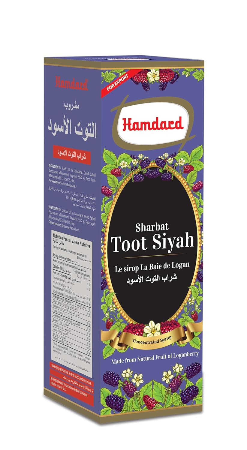 Hamdard Sharbat Toot Siyah is a herbal syrup formulated with natural ingredients. It is traditionally used to address symptoms associated with the common cold and sore throat.