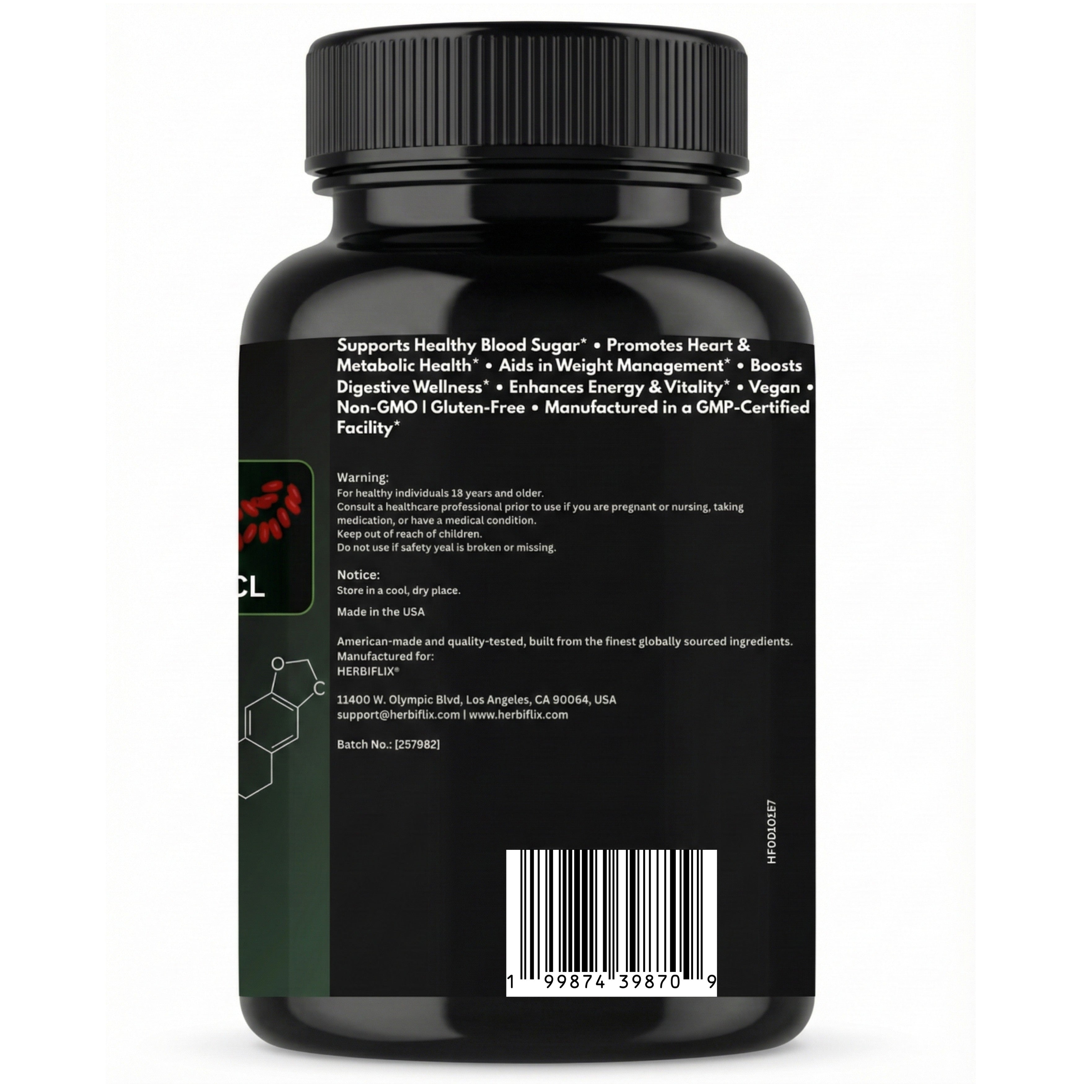 Each bottle delivers 60 vegan capsules that are non-GMO and gluten-free — created for quality-conscious consumers. Herbiflix products are produced with strict quality controls to ensure purity and reliability.