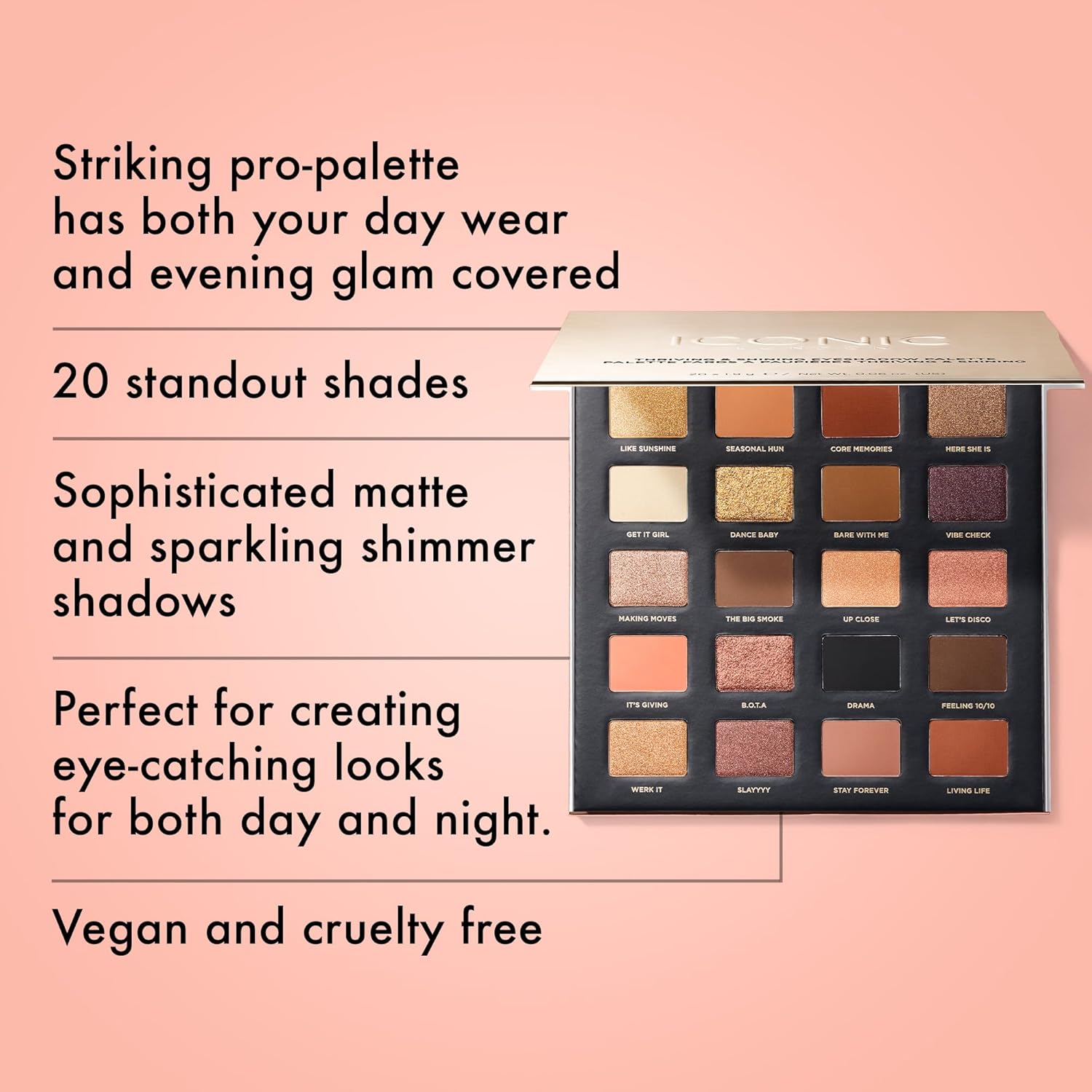 Unleash your inner artist with the ICONIC London Thriving & Shining Eyeshadow Palette, a collection designed to inspire endless eye-catching looks. Featuring 20 incredibly versatile shades, this palette offers a dynamic range from buttery mattes to dazzling shimmers, perfect for creating everything from subtle daytime glamour to dramatic evening statements. Each highly pigmented shade is formulated for smooth application, effortless blending, and long-lasting wear, ensuring your eyes thrive and shine all day and night.