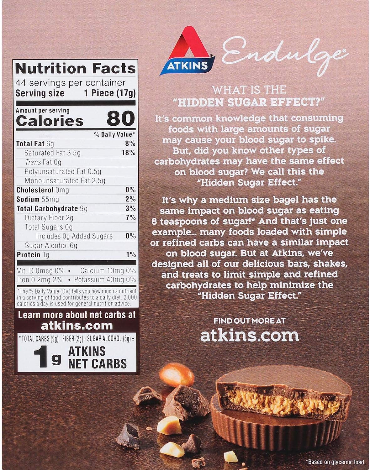 Satisfy your chocolate cravings the keto way with Atkins Endulge Peanut Butter Cups. Each pack contains 44 individually wrapped cups packed with creamy peanut butter and rich chocolate flavor. Made with low net carbs and no added sugar, they're the perfect treat for anyone following a ketogenic or low-carb lifestyle.