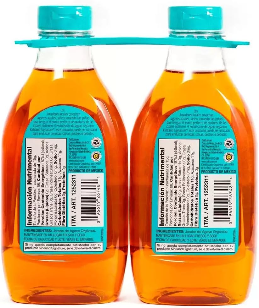 Kirkland Signature Organic Blue Agave Syrup serves as a liquid sweetener alternative in cooking and beverage preparation. Its composition and physical properties support integration into a variety of recipes.