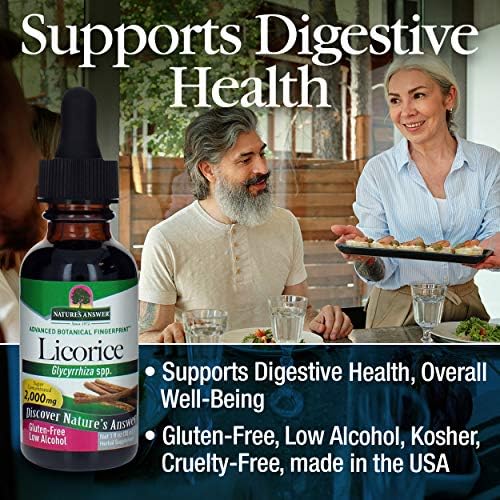 Discover the traditional power of Nature's Answer Alcohol-Free Licorice Root Extract, a highly concentrated formula delivering 2000mg equivalent of potent licorice root per serving. Sourced from Glycyrrhiza glabra, this premium herbal supplement is renowned for its natural soothing properties, supporting healthy digestive function, respiratory comfort, and immune system strength. Crafted using Nature's Answer's advanced Bio-Chelation process, it ensures optimal purity, potency, and bioavailability without the use of alcohol, making it ideal for those seeking a gentle yet effective herbal remedy.