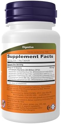 Support your digestive system and overall wellness with NOW Foods Probiotic-10. This powerful supplement delivers a balanced spectrum of live organisms, consisting of acid-resistant probiotic bacterial strains that are known to naturally colonize the human GI tract. Probiotic-10 helps maintain a healthy gut flora, crucial for optimal digestion, nutrient absorption, and immune system support. Formulated with 25 billion active cultures and 10 beneficial probiotic strains, these vegetarian capsules are designed for maximum efficacy.