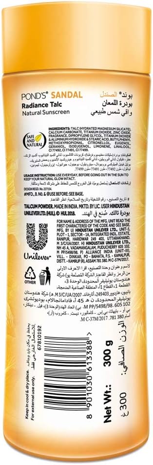 Experience the enduring charm and freshness of POND'S Sandal Talc, a classic fragrance that provides an instant boost of traditional elegance. This finely milled talcum powder is designed to keep your skin feeling smooth, dry, and wonderfully scented all day long. Its unique formulation effectively absorbs excess moisture, preventing stickiness and discomfort, especially in humid conditions. Infused with the warm, soothing notes of sandalwood, it leaves a delicate, refreshing aroma that uplifts your senses and keeps you feeling confident from morning to night. An essential for your daily grooming ritual, POND'S Sandal Talc offers a timeless blend of comfort and fragrance.