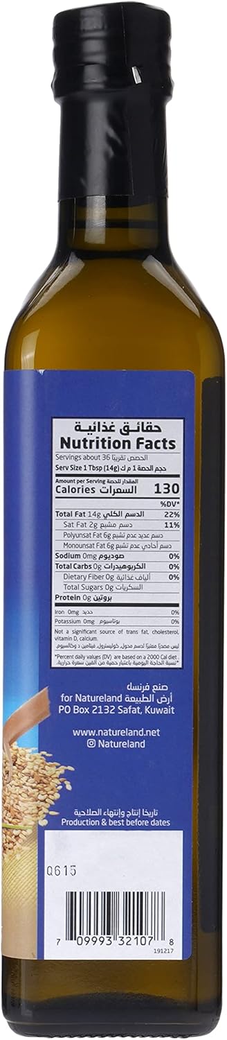 Versatile and easy to incorporate, Natureland Sesame Oil shines in various applications. Start with small amounts to appreciate its potent flavor, adjusting as needed for your recipes. Always store in a cool, dark place to preserve its qualities.