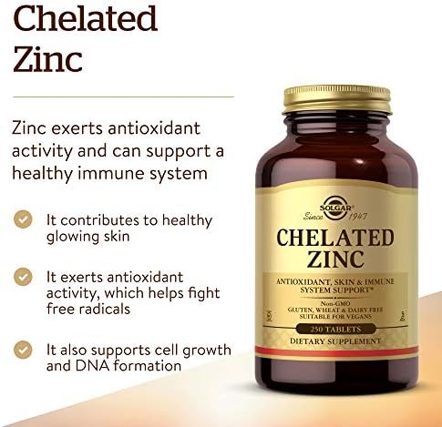 Elevate your daily wellness routine with Solgar Chelated Zinc Tablets, offering an advanced and highly absorbable form of this essential mineral. Zinc plays a pivotal role in numerous bodily functions, including robust immune system support, healthy skin and vision, normal taste and smell, and cellular growth. Solgar's chelated form ensures optimal absorption and utilization by the body, minimizing potential digestive discomfort often associated with other forms of zinc. Each bottle provides a generous supply of 250 tablets, making it easy to maintain consistent zinc levels for overall health and vitality.