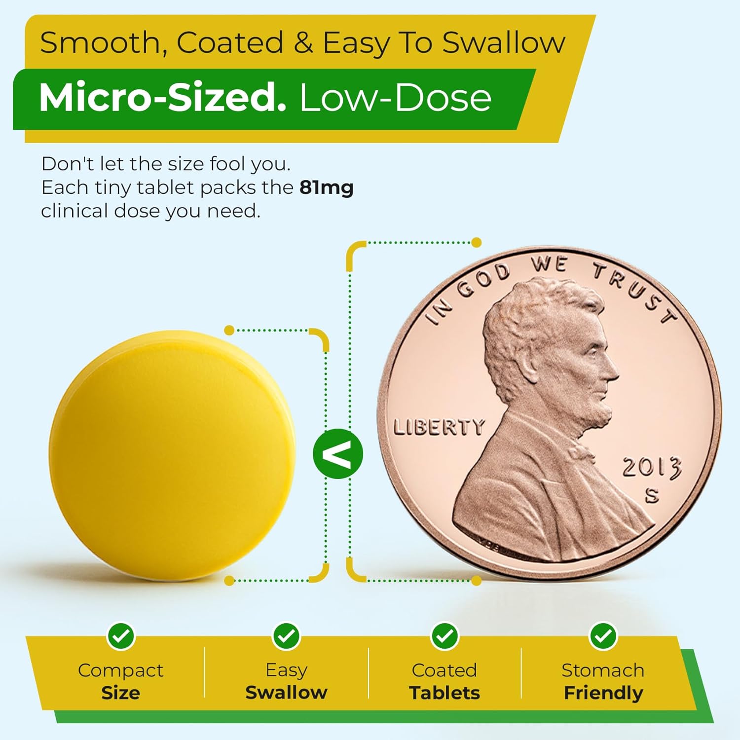 Discover effective and gentle relief with Timely Baby Aspirin 81mg, specifically formulated for adults. This low-dose aspirin is your reliable solution for minor aches, pains, and reducing fevers. Its special enteric coating is designed to protect your stomach, ensuring a smoother experience by preventing the aspirin from dissolving until it reaches the small intestine.