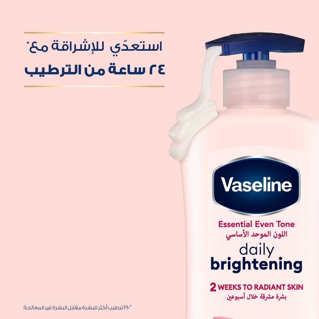 Achieve visibly brighter and more radiant skin with the Vaseline Daily Brightening Body Lotion. This generous 725ml bottle is formulated to provide deep moisturization while working to enhance your skin's natural glow. Perfect for daily use, its non-greasy formula absorbs quickly, leaving your skin feeling soft, smooth, and revitalized.