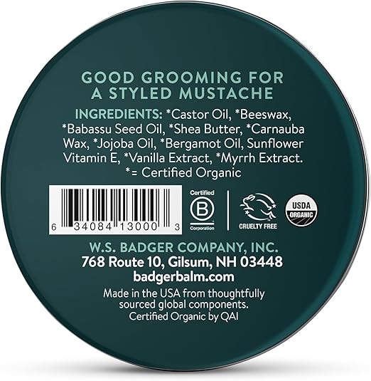 Achieve a perfectly groomed look with Badger Mustache Wax, crafted to provide a natural hold and a healthy, subtle shine. This premium wax is formulated with high-quality, natural ingredients to help you style and tame unruly mustache hairs, ensuring a polished and refined appearance that lasts all day. It's easy to apply, offers flexible control, and nourishes your mustache without leaving a greasy residue, washing out cleanly at the end of the day.