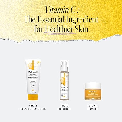 Transform your daily cleansing ritual with the Derma E Vitamin C Gentle Daily Cleansing Turmeric Paste, designed to reveal a visibly brighter and more even-toned complexion. This unique paste combines the powerful antioxidant benefits of Vitamin C with the calming and illuminating properties of Turmeric. Vitamin C works to reduce the appearance of dullness, support healthy collagen production, and protect skin from environmental damage, while Turmeric helps to soothe and enhance skin's natural radiance. Its rich, gentle formula effectively removes impurities, makeup, and excess oil without stripping essential moisture, leaving your skin feeling refreshed, soft, and glowing. Ideal for all skin types, this brightening cleanser is a perfect step towards a luminous complexion.