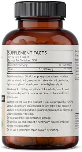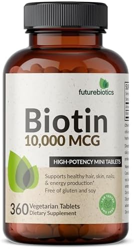 Elevate your beauty and well-being with Futurebiotics Biotin, High Potency. Each vegetarian tablet provides a powerful 10,000 mcg of Biotin, also known as Vitamin B7, a vital nutrient renowned for its significant contributions to lustrous hair, vibrant skin, and strong, healthy nails. This advanced formula is specifically designed to support the body's natural keratin production, an essential protein for maintaining the structural integrity of hair and nails. Beyond its acclaimed beauty benefits, Biotin also plays a crucial role in cellular energy metabolism, aiding in the conversion of food into usable energy, thereby contributing to overall vitality and an active lifestyle. Choose Futurebiotics for a convenient and effective way to nourish your body from within.