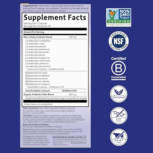 Support your daily well-being with Garden of Life Dr. Formulated Probiotics for Men, a powerful daily supplement specifically designed to address men's unique health needs. This doctor-formulated blend provides robust digestive and immune system support, helping to maintain a healthy gut microbiome for overall vitality. Crafted with diverse, high-potency probiotic strains, it's an essential addition to your daily health regimen.