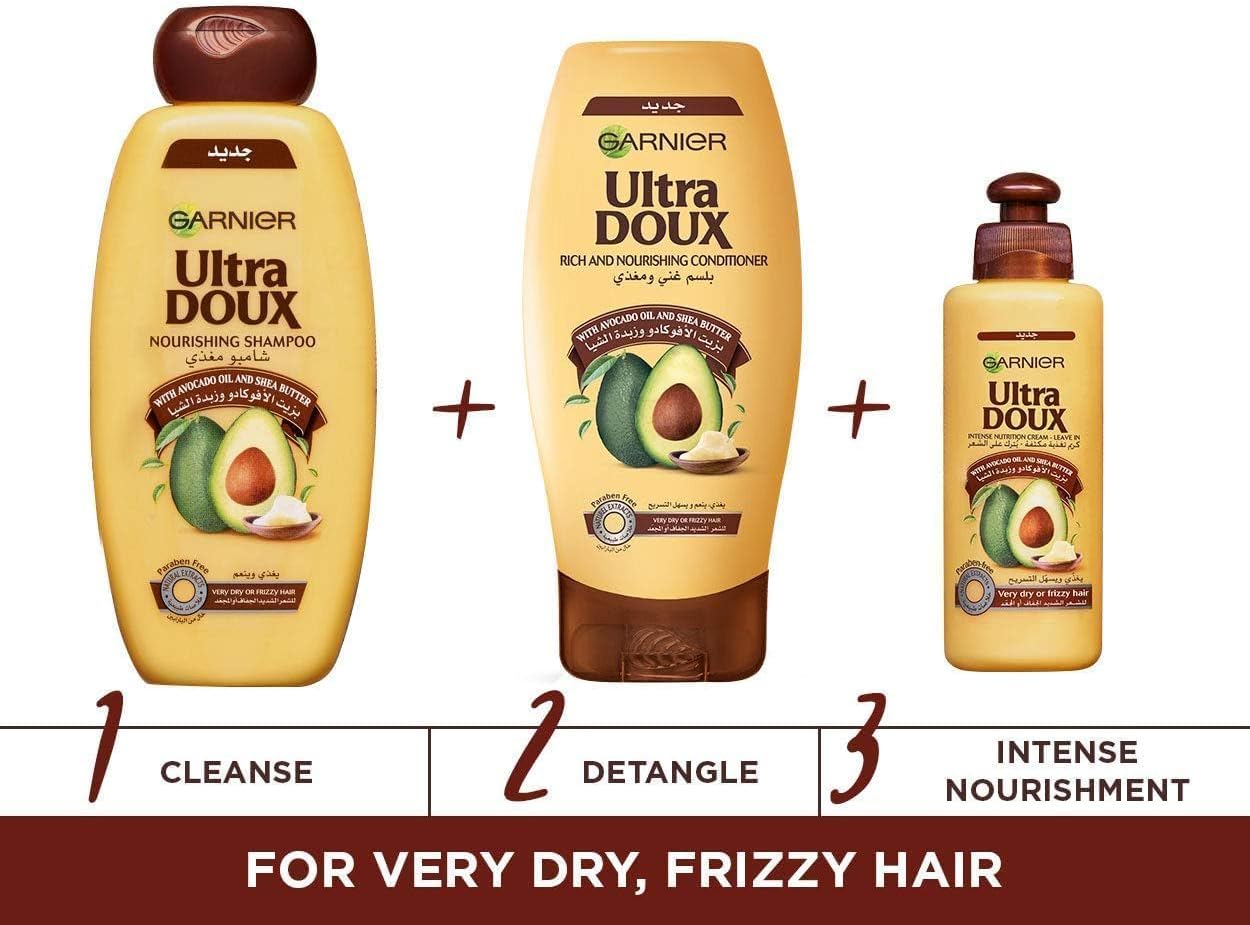 Transform your dry, frizzy hair with the deeply nourishing Garnier Ultra Doux Avocado & Shea Butter Leave-In Conditioner. This luxurious, non-rinse formula is a blend of natural avocado oil and shea butter, known for their intensely moisturizing and repairing properties. Designed to provide continuous care, it works to detangle, soften, and protect your hair from daily aggressors, leaving it incredibly smooth, shiny, and manageable without any greasy residue. Say goodbye to frizz and hello to beautifully hydrated, healthy-looking locks.