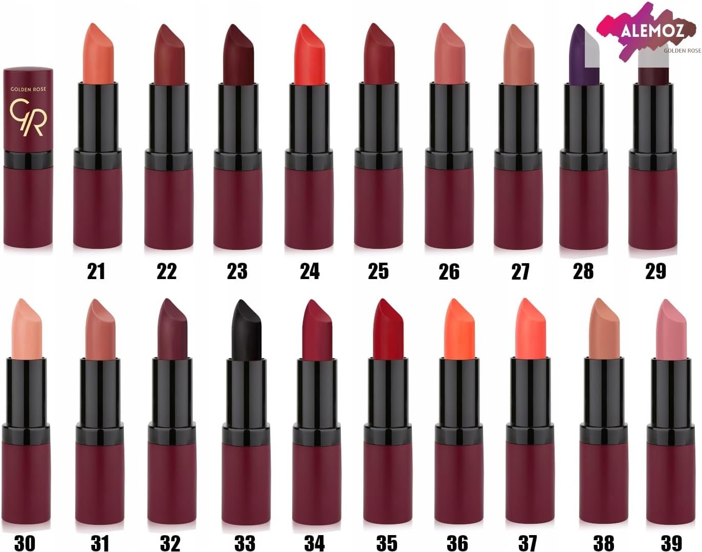 Experience the ultimate in lip luxury with the Golden Rose Velvet Matte Lipstick No. 39. Designed for the modern individual, this lipstick delivers an incredibly rich, luxurious matte finish that feels as good as it looks. Its highly pigmented formula ensures intense, opaque color payoff with just one swipe, providing a sophisticated and captivating look. Enjoy all-day wear with its long-lasting properties, keeping your lips beautifully colored without constant touch-ups, while maintaining a comfortable, non-drying feel.