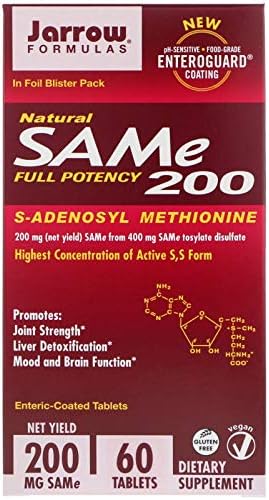 Discover the multifaceted benefits of Jarrow Formulas SAM-e 200mg, an advanced dietary supplement formulated to support both emotional well-being and physical comfort. SAM-e (S-Adenosylmethionine) is a naturally occurring compound in the body that plays a crucial role in various biochemical reactions, including neurotransmitter synthesis essential for mood regulation and the formation of cartilage compounds vital for healthy joints. Our premium tablets are enteric-coated to ensure optimal absorption and stability, protecting the SAM-e from stomach acid degradation for maximum efficacy. Incorporate Jarrow Formulas SAM-e into your daily routine to foster a balanced mood and maintain flexible, healthy joints.