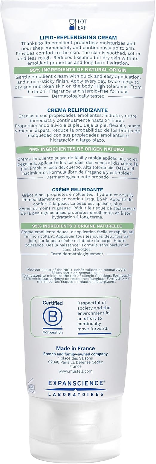 Discover the ultimate relief for very dry to eczema-prone skin with Mustela Stelatopia+ Lipid-Replenishing Cream. This advanced formula is specifically designed to soothe, nourish, and protect delicate skin, providing intense and long-lasting hydration. Clinically proven to reduce severe dryness and itching, it works to restore the skin's natural barrier and minimize flare-ups, ensuring comfort for your little one and peace of mind for you.