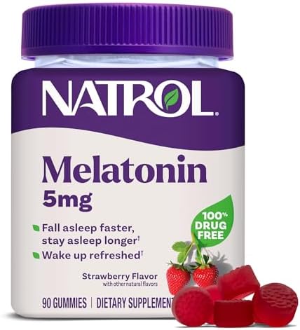 Each serving delivers 5 mg of high-quality melatonin in a convenient, easy-to-take gummy form. Perfect for combating occasional sleeplessness, regulating sleep cycles, or adjusting to new time zones. Natrol's formula is 100% drug-free and non-habit forming, making it a safe choice for nightly use.