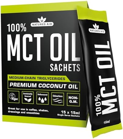 Unlock your natural vitality with Nature's Aid MCT Oil Sachets, your perfect partner for sustained energy and enhanced focus. Derived from pure coconut oil, these Medium Chain Triglycerides (MCTs) are rapidly absorbed and converted into ketones, providing a clean, efficient fuel source for both your body and brain. Ideal for busy lifestyles, athletes, or anyone seeking a natural energy lift without the jitters, these convenient sachets integrate seamlessly into your daily routine to support a healthier, more energetic you.