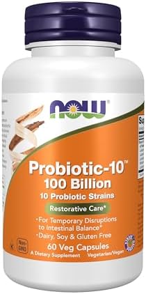 Elevate your digestive and immune health with NOW Foods Probiotic-10, a powerful supplement delivering an impressive 100 Billion active cultures per serving. This premium formula is meticulously crafted with 10 diverse and clinically validated probiotic strains, including Lactobacillus acidophilus, Bifidobacterium lactis, and Streptococcus thermophilus, designed to promote a balanced and thriving gut microbiome. Regular intake helps maintain intestinal flora, supports optimal nutrient absorption, and fortifies your body's natural defense mechanisms, contributing to overall vitality and well-being.