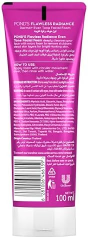 Unveil a brighter, more even-toned complexion with POND'S Flawless Radiance Even Tone Facial Foam. This advanced facial cleanser is expertly formulated with a powerful blend of Niacinamide (Vitamin B3) and Vitamin E to gently yet effectively cleanse your skin, removing impurities, dirt, and excess oil. Experience a refreshing wash that helps to reduce the appearance of dark spots and promote a luminous, radiant glow, leaving your skin feeling soft, smooth, and revitalized.
