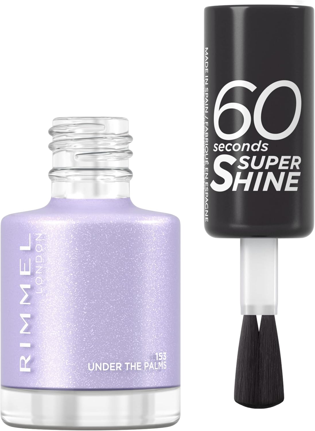 Achieve salon-quality nails in an instant with Rimmel 60 Seconds Super Shine Nail Polish. This innovative formula delivers a vibrant, high-impact "Under The Palms" shade that dries in just 60 seconds, perfect for on-the-go beauty. Experience brilliant, super shiny color that lasts, resisting chips and wear for a flawless manicure every time.