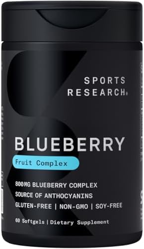Support your overall wellness and cellular health with Sports Research Blueberry Concentrate Softgels. Each easy-to-swallow softgel delivers a potent 800mg dose of concentrated blueberry extract, renowned for its rich antioxidant profile. Blueberries are nature's superfood, packed with beneficial compounds that help combat free radicals and support a healthy aging process. Our premium formula provides a convenient way to integrate the powerful benefits of blueberries into your daily routine, promoting vitality and protection from oxidative stress.