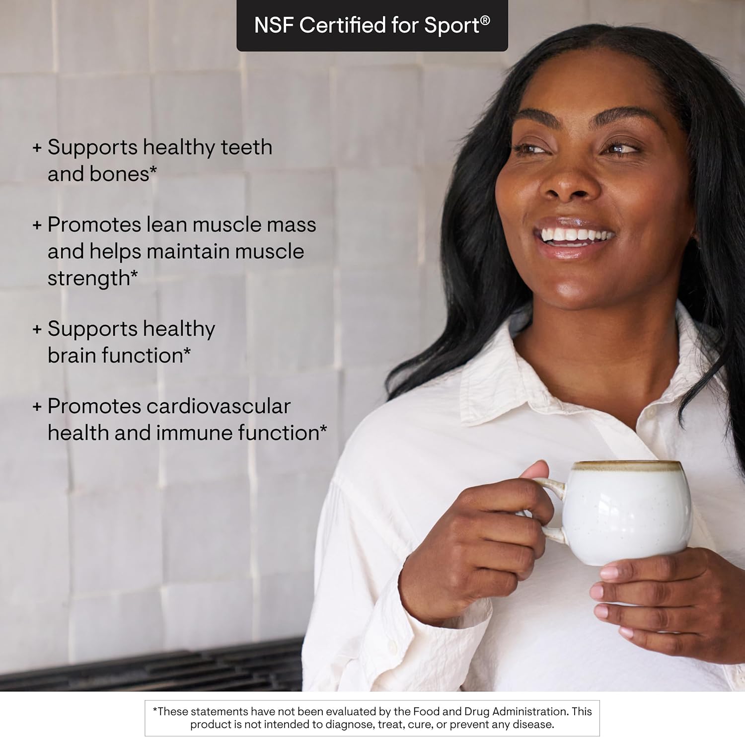 THORNE Vitamin D-5000 is a dietary supplement containing 5000 IU of cholecalciferol (Vitamin D3) per capsule. Vitamin D3 contributes to the maintenance of normal bones and teeth, supports normal muscle function, and plays a role in the normal function of the immune system. This product is NSF Certified for Sport, indicating it has been tested for banned substances and verified for label accuracy and purity. It is formulated without dairy or soy ingredients.
