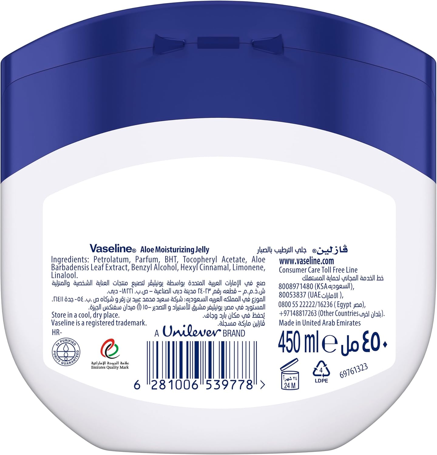 This generously sized 450ml jar offers long-lasting care, helping to lock in moisture and protect your skin's natural barrier. Ideal for relieving dryness, soothing minor cuts and burns, or simply maintaining soft, smooth skin. Experience the unique blend of Vaseline's healing properties with the calming benefits of aloe.