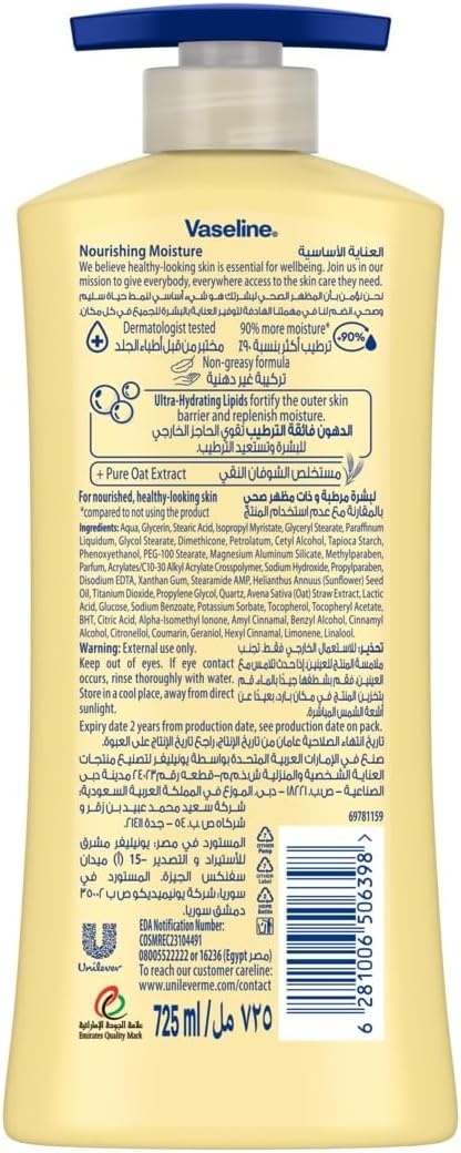 Experience the ultimate in skin hydration and healing with Vaseline Essential Healing Body Lotion. Specially formulated to penetrate deep into dry, rough skin, this lotion delivers long-lasting moisture, leaving your skin feeling soft, smooth, and revitalized. Its unique blend, featuring micro-droplets of Vaseline Jelly, works to repair and protect the skin's natural barrier, locking in moisture to promote healing from within. Enjoy a non-greasy, fast-absorbing formula that provides intense relief without a heavy feel, perfect for daily use on all skin types. The generous 725ml bottle ensures you have a continuous supply of this essential skincare solution.