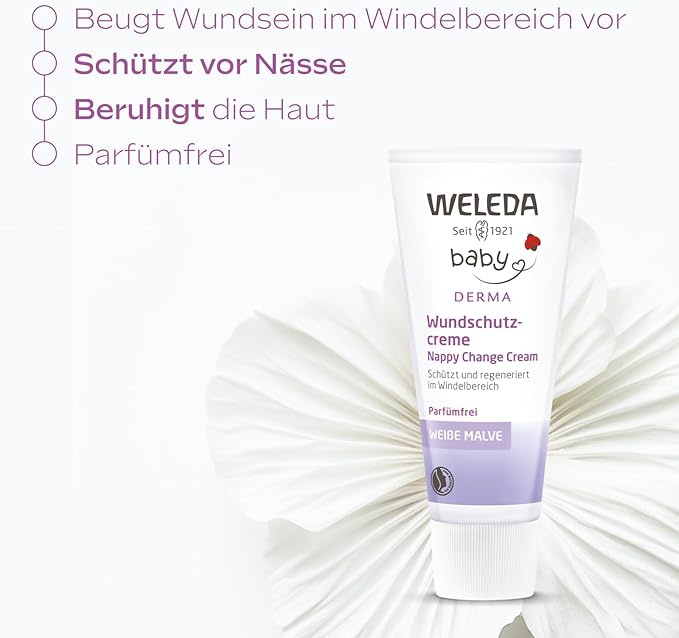 Protect your baby's delicate skin with the Weleda White Mallow Nappy Change Cream. Specially formulated for highly sensitive and irritation-prone skin, this gentle cream provides effective and natural protection for the diaper area. Infused with organic White Mallow extract, it soothes and calms redness, while a blend of zinc oxide and organic coconut oil creates a protective barrier against moisture and irritation. Ensure your baby's comfort with this dermatologically tested, fragrance-free formula.