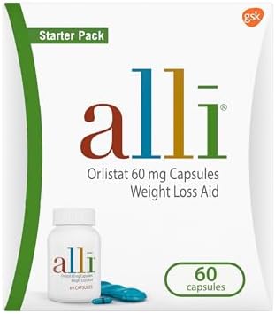 Discover alli, the non-prescription weight loss aid featuring Orlistat 60mg, designed to help you achieve your weight loss goals. alli works by blocking about 25% of the fat you eat from being absorbed by your body, making it an effective tool when combined with a reduced-calorie, low-fat diet and exercise plan. This convenient starter pack includes 60 capsules, providing an accessible way to kickstart your journey towards a healthier weight and improved well-being.