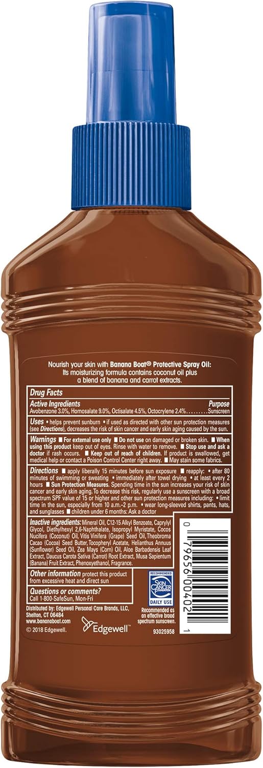 Achieve a beautiful, sun-kissed glow while providing your skin with essential protection using Banana Boat Tanning Oil SPF 15. This expertly formulated tanning oil is designed to help you deepen your natural tan, giving you that radiant, vacation-ready look. Infused with a light, non-greasy formula, it glides smoothly onto your skin, leaving it feeling soft and moisturized. The added SPF 15 helps to prevent sunburn, allowing you to enjoy your time outdoors responsibly. Perfect for beach days, poolside relaxation, or any outdoor activity where you want to enhance your tan while staying protected.