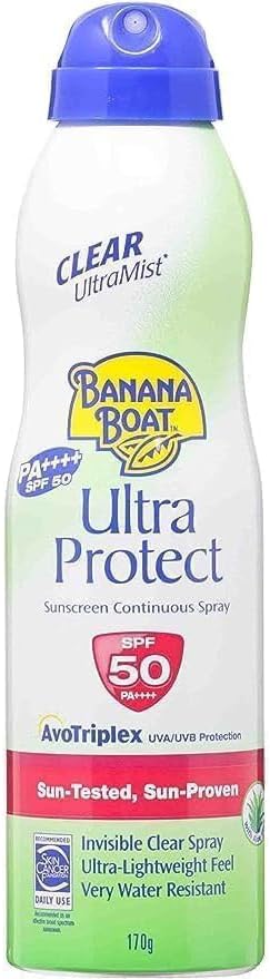 Ensure superior sun protection with Banana Boat Ultra Protect Sunscreen Lotion Spray SPF 50. This convenient spray formula offers broad-spectrum defense against harmful UVA and UVB rays, helping to prevent sunburn and premature skin aging. Its lightweight, non-greasy lotion absorbs quickly, providing a high level of protection without feeling heavy on your skin. Perfect for active individuals and everyday use, it's designed for easy application to keep you shielded during all your outdoor adventures.