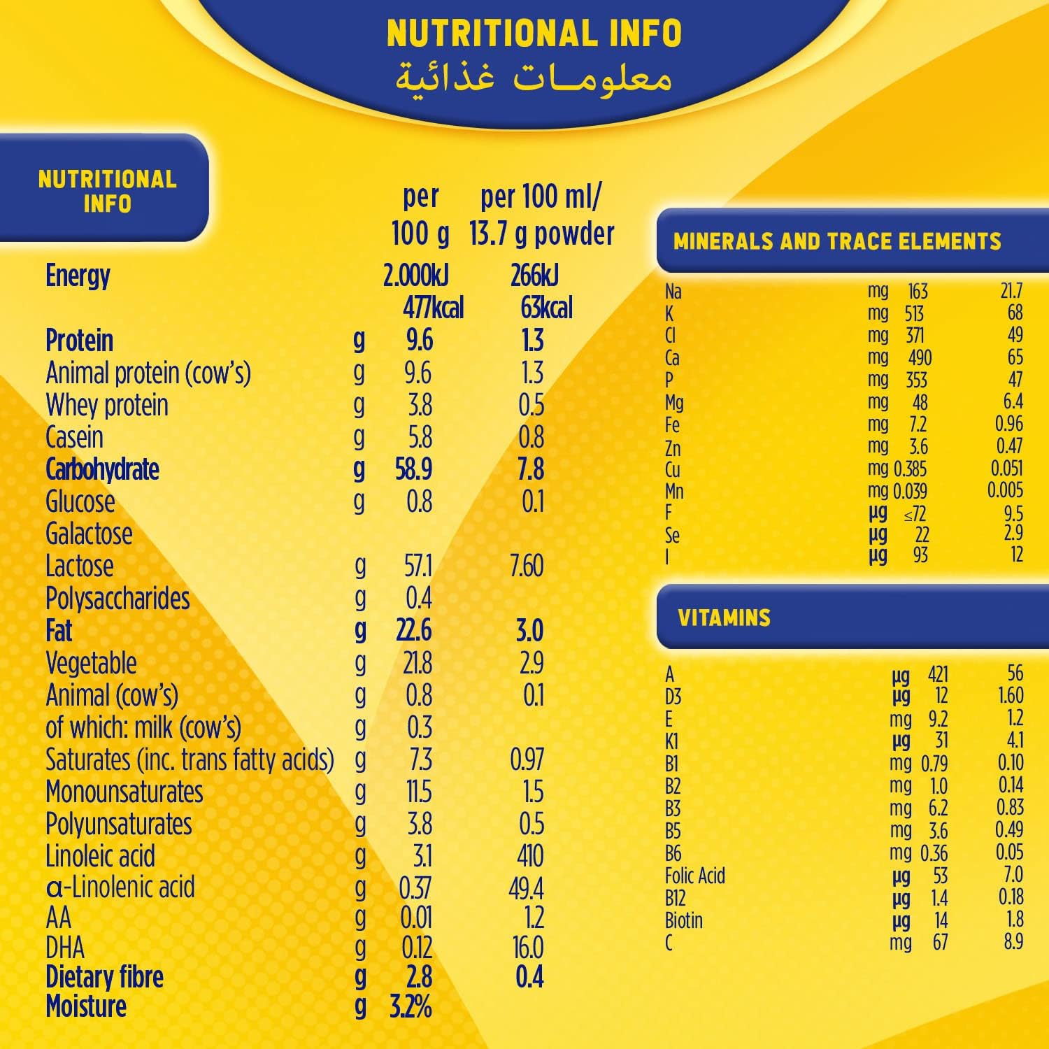 غني بالفيتامينات والمعادن والعناصر الحيوية الأخرى، يساعد Bebelac 2 في تقوية العظام وتنمية الوظائف الإدراكية وتحسين الصحة العامة لطفلك في هذه المرحلة النشطة. صُمم ليتم دمجه بسهولة مع الاحتياجات الغذائية المتغيرة لرضيعك.