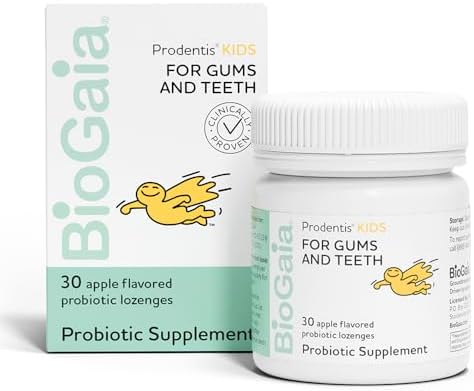 Support your child's complete oral health with BioGaia Prodentis Kids Probiotic for Oral Health. These delicious, apple-flavored lozenges are specifically formulated to introduce beneficial bacteria to the mouth, fostering a balanced oral microbiome. Beyond brushing and flossing, these daily probiotics help strengthen your child's natural defenses, promoting stronger teeth, healthier gums, and long-lasting fresh breath. Make oral care an enjoyable part of their routine with a taste they'll love!